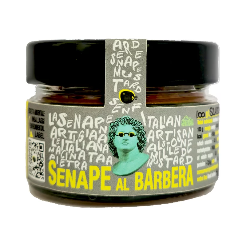Mustard with barbera wine, assumes the taste profile typical of this piedmont wine with acidity and roundness, slightly tannic, completes perfectly the mustard sharpness. Red meat, rosted meat, chard, cauliflower, broccoli, vegan dishes Ingrediants: Grains of sinapis alba* and brassica nigra*, Barbera wine**, apple vinegar, water, dry beetroot salt. * of our production. ** Contains sulfites